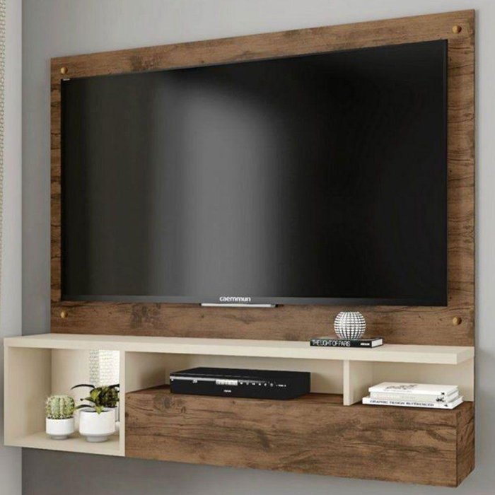 O Painel para Tv de até 55 polegadas da Caemmun possui design moderno e com nichos bem estruturados para acomodar diversos objetos e eletroeletrônicos.