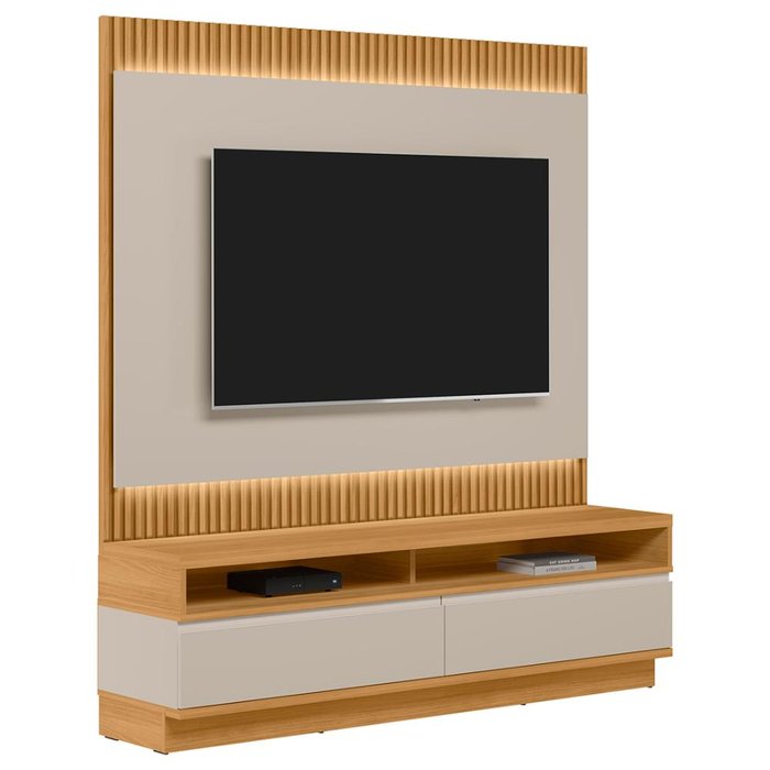 Painel para Tv 70 Pol e Rack Bancada 180cm Real L06 Tauari/off White Fosco - Mpozenato TauariOff White