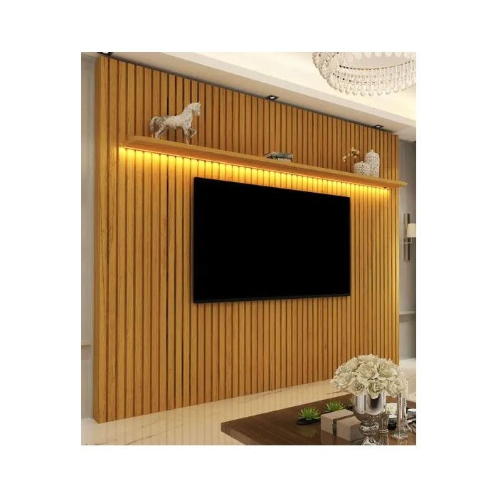 Painel com ripas de verdade;Inclui LED;Ideal para Tvs de até 60 polegadas;Oferece possibilidade de montagem da prateleira acima da TV ou abaixo;Pintura ultravioleta com acabamento amadeirado na cor naturale.