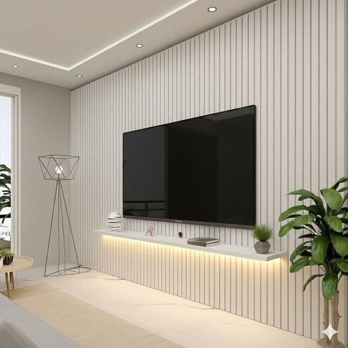 Painel para Tv 90 Polegadas Ripado com Led 330cm 100% Mdf Nobre Off White
