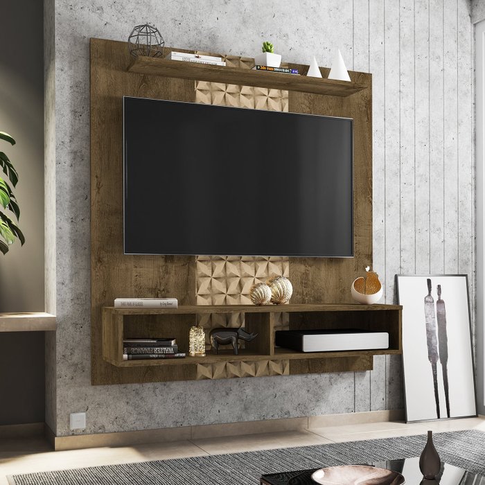Painel para TV até 43 Polegadas Gama Móveis Bechara Madeira Rústica/Madeira 3D