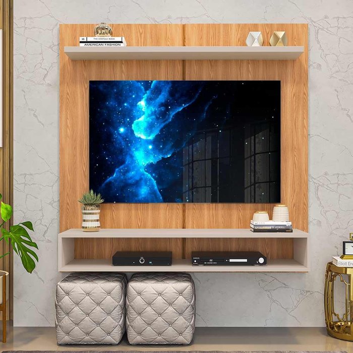 Painel Para TV Até 50 Polegadas Carvalho Nobre Griz Theo DJ Móveis