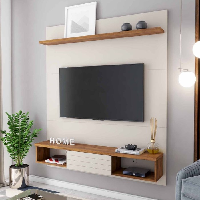 Painel para TV até 55 Polegadas 1 Porta 3 Nichos Denver Espresso Móveis Off White/Pinho