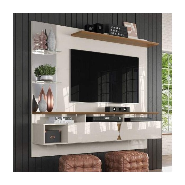 Painel para TV até 55 Polegadas com Espelho 2 Portas Intense Lukaliam Móveis Off White/Damasco