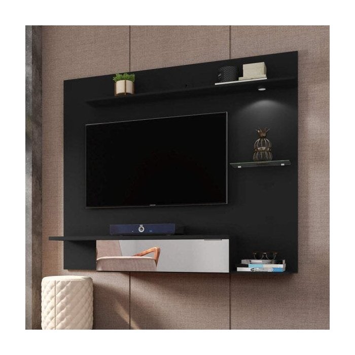 Painel para TV até 55 Polegadas com LED e Espelho Móveis Bechara Preto Fosco