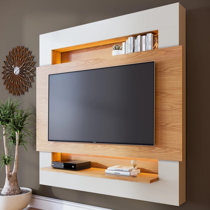 Painel para TV até 58 Polegadas com Fita de LED 1 Prateleira Abruzzo Yescasa Freijó/Off White