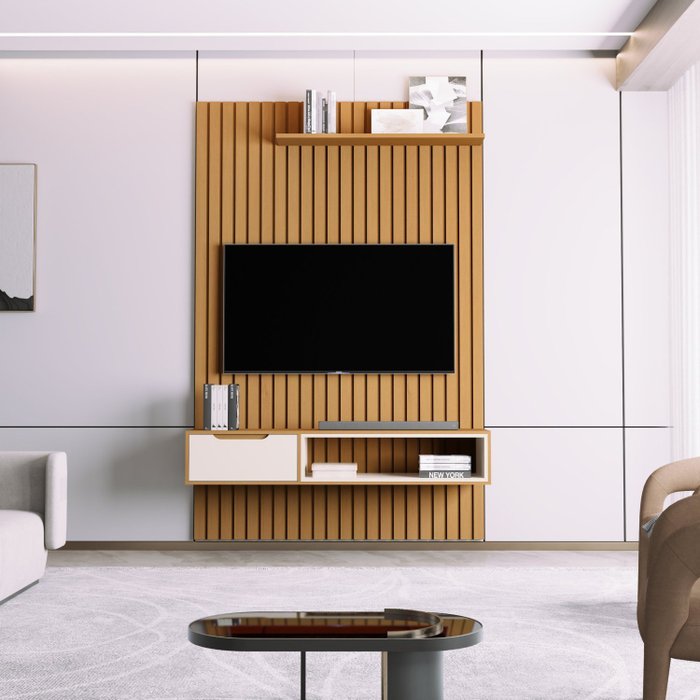 Painel para Tv até 58 Polegadas Ripado Tucumã 1.4 Nature/Pérola