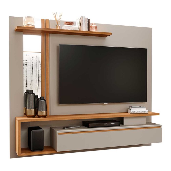 Painel para TV até 60 Polegadas Treviso 100% MDF com 1 Porta Permóbili Off White/Nature
