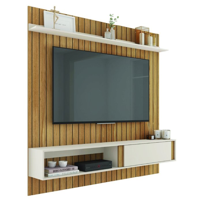 Painel para Tv até 65 Polegadas Ripado 1,80m Londres Buriti / Off White Caemmum