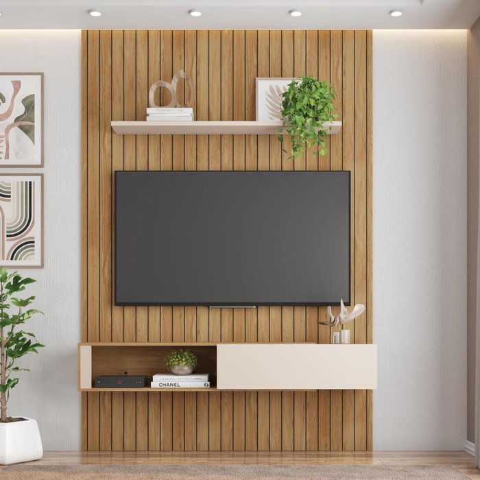 Painel Para TV até 70 Polegadas Aurora 1 Porta Caemmun Buriti/Off White/Lamina Mel