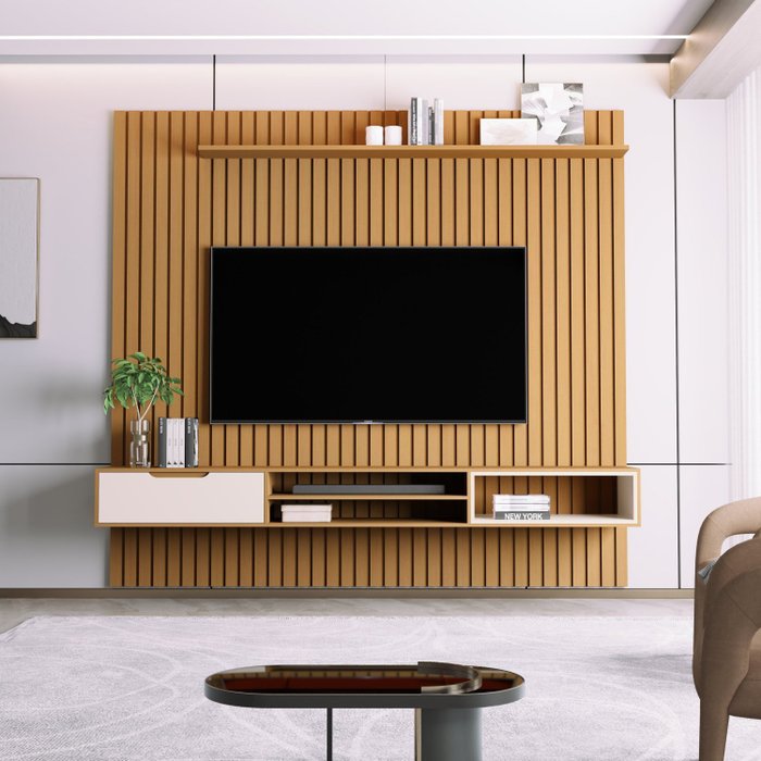 Painel para Tv até 80 Polegadas Ripado Tucumã 2.3 Nature/Pérola