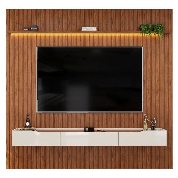 Painel para Tv até 85 Polegadas 2,50m Ripado Autêntico com Led Montreal com Nicho Efraín Madeirado/Off White