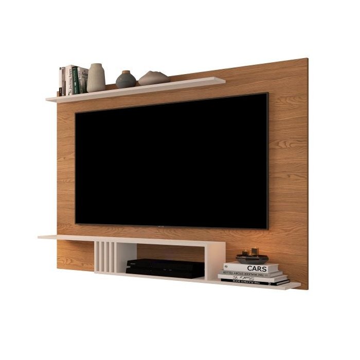 Painel para TV de 55 Polegadas com Prateleiras Luxo - Freijó/Off White