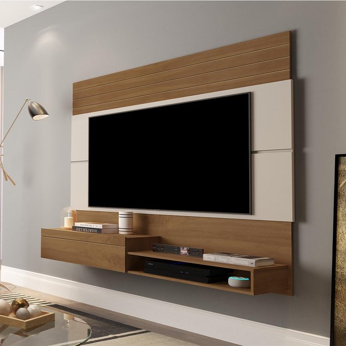 Painel Para TV de até 60 Pol. com Nicho e Prateleira – Dubai - Freijó/Off White