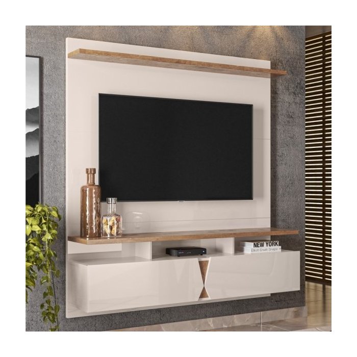 Painel para TV Ravena Off White Canela O Painel Ravena é ideal para complementar sua casa. Portas basculantes com articulador Tampo e prateleira em MDP 25mm Espaço para TV até 55'' Dimensões do produto montado: Altura: 153 cm Largura: 136 cm Comprimento: 34 cm Informações complementares: Material: MDP/MDF Gavetas: Não. Portas: Sim, 2. Prateleiras: Sim Iluminação: Não. Itens inclusos: 01 Painel para TV. Kit completo para montagem, manual de instruções para montagem. Garantia: 3 meses contra defeito de fabricação. Informações complementares: - Fotos meramente ilustrativas do produto no ambiente. - Os objetos que ambientam as fotos não acompanham o produto; - Verificar descrição e tamanho do produto antes da compra. - Avaliar a mercadoria no ato do recebimento e recusar em caso de divergência ou avarias. - Mantenha as informações de contato e endereço de entrega atualizados para entrarmos em contato caso necessário. - Limpar com flanela ou pano macio seco, não utilizar produtos abrasivos, desengordurantes, álcool ou solvente. Não expor o produto diretamente à luz solar e à umidade. * Sugerimos a contratação de um montador profissional para a montagem do produto. Não nos responsabilizamos por avarias causadas no ato da montagem. * Não nos responsabilizamos pela montagem e desmontagem do produto no ato da entrega e devolução, assim como os custos gerados nestas situações. * A transportadora entregará o produto no andar térreo do endereço de entrega. * Não nos responsabilizamos por subir escadas, corredores e elevadores ou transporte por guincho em apartamentos.