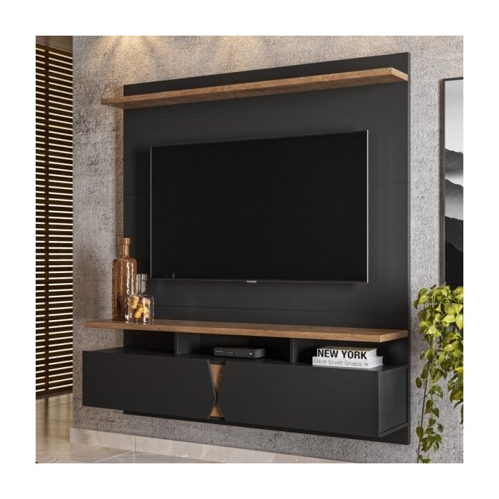 Painel para TV Ravena Preto Canela O Painel Ravena é ideal para complementar sua casa. Portas basculantes com articulador Tampo e prateleira em MDP 25mm Espaço para TV até 55'' Dimensões do produto montado: Altura: 153 cm Largura: 136 cm Comprimento: 34 cm Informações complementares: Material: MDP/MDF Gavetas: Não. Portas: Sim, 2. Prateleiras: Sim Iluminação: Não. Itens inclusos: 01 Painel para TV. Kit completo para montagem, manual de instruções para montagem. Garantia: 3 meses contra defeito de fabricação. Informações complementares: - Fotos meramente ilustrativas do produto no ambiente. - Os objetos que ambientam as fotos não acompanham o produto; - Verificar descrição e tamanho do produto antes da compra. - Avaliar a mercadoria no ato do recebimento e recusar em caso de divergência ou avarias. - Mantenha as informações de contato e endereço de entrega atualizados para entrarmos em contato caso necessário. - Limpar com flanela ou pano macio seco, não utilizar produtos abrasivos, desengordurantes, álcool ou solvente. Não expor o produto diretamente à luz solar e à umidade. * Sugerimos a contratação de um montador profissional para a montagem do produto. Não nos responsabilizamos por avarias causadas no ato da montagem. * Não nos responsabilizamos pela montagem e desmontagem do produto no ato da entrega e devolução, assim como os custos gerados nestas situações. * A transportadora entregará o produto no andar térreo do endereço de entrega. * Não nos responsabilizamos por subir escadas, corredores e elevadores ou transporte por guincho em apartamentos.