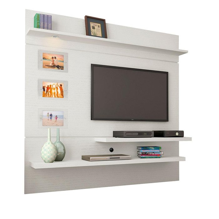 As palavras ordem e charme irão invadir a sua sala de estar através deste lindíssimo Painel Home Interativo da Valdemóveis. Confeccionado com materiais de qualidade MDF/MDP ele é ideal para deixar o ambiente mais organizado e melhor decorado, possui espaço amplo para TVs de até 60 polegadas, além de prateleiras em 40 mm e 25 mm de espessura, vem acompanhado de três portas retratos de vidro, e com iluminação LED dando um toque a mais de luxo e charme para o seu ambiente. Características do Produto: Dimensões: Largura 1,82m; Altura 1,78m; Profundidade 0,33m. Itens Inclusos: 1 Painel e manual de montagemTipo: Painel/HomeAmbiente: Sala de EstarCor Predominante: BrancoEscala de Brilho: BrilhoCor: BrancoPossui Prateleiras: 03Possui Espaço Para Fotos: SimPossui Gavetas: NãoPossui Pés: NãoPossui Iluminação: SimPossui Portas: NãoTamanho de TV ideal: Até 60 PolegadasAcompanha Suporte para TV: SimPeso Máximo Suportado: 60 kgPeso Máximo por Prateleira: 15 kgNecessita Montagem: SimAcompanha Manual de Montagem: SimSistema de Montagem: Parafusos e CavilhasComplexidade de Montagem: Média, pode ser montado por mais de uma pessoa e/ou necessite de maior conhecimento para montagem. Recomendações de Uso, Manutenção e Limpeza: Limpar com flanela ou pano macio seco, não utilizar produtos abrasivos, desengordurantes, álcool ou solvente. Não expor o produto diretamente à luz solar e à umidade. Garantia: 3 meses