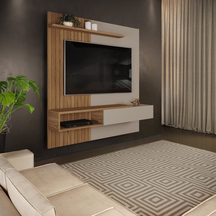 Painel para TV Lapa Dj Móveis Griz/Carvalho Nobre