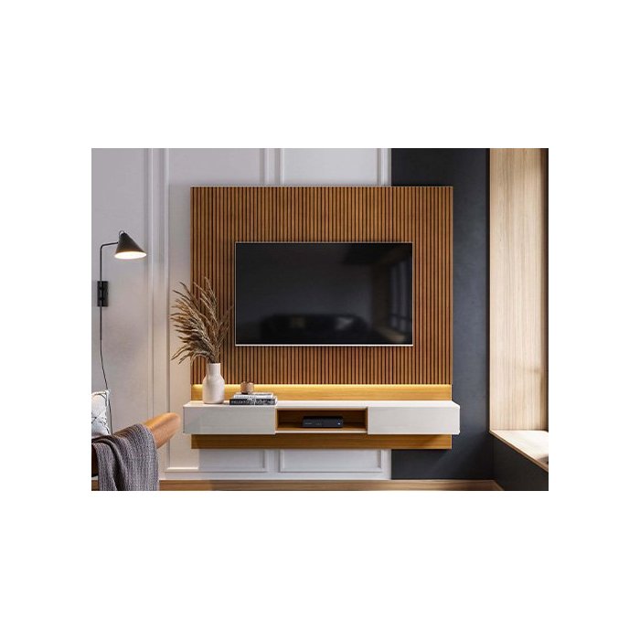 Painel para Tv Paris 1.80 Tauri Ripado/off White Perolizado Lukalian