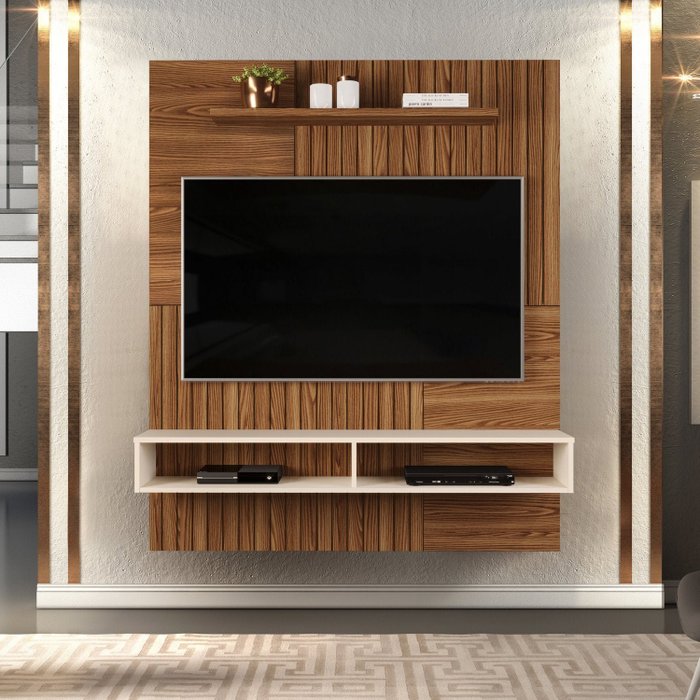 Painel para TV Plaza Dj Móveis Carvalho Nobre/Off White