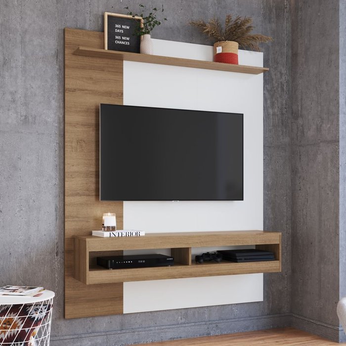 Painel para TV Suspenso Grécia 145cm com Nicho PS200 Delmarco Delmarco Mel/Branco Touch