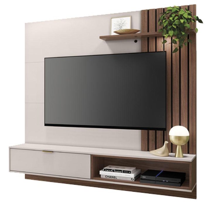 Painel para Tv Suspenso Tocantins 1.8 Off White Nogueira Real - Colibri Off White Nogueira Real