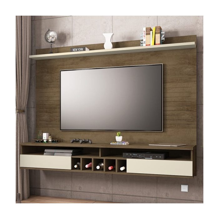 Painel para TV com Adega Navan Freijó Off WhiteO Painel para TV com Adega Navan é ideal para você que quer praticidade, organização e beleza.Espaço para TV de até 60 Polegadas.Medidas Do Produto:Altura: 140 cm Largura: 183 cmComprimento: 43 cmInformações Complementares:Tampo de 25mmAdega para 05 garrafas02 Nichos para aparelhosIdeal para TVs de até: 60"Material Principal: MDF/MDP02 Portas Basculante com dobradiças metálicasAcompanha Suporte para TV: Sim* A fixação da TV no painel é obrigatória *Itens Inclusos:01 Painel para TVKit completo para montagem, manual de instruções para montagem.3 meses contra defeito de fabricação.Informações complementares:- Fotos meramente ilustrativas do produto no ambiente.- Os objetos que ambientam as fotos não acompanham o produto;- Verificar descrição e tamanho do produto antes da compra.- Avaliar a mercadoria no ato do recebimento e recusar em caso de divergência ou avarias.- Mantenha as informações de contato e endereço de entrega atualizados para entrarmos em contato caso necessário.- Limpar com flanela ou pano macio seco, não utilizar produtos abrasivos, desengordurantes, álcool ou solvente. Não expor o produto diretamente à luz solar e à umidade.* Sugerimos a contratação de um montador profissional para a montagem do produto. Não nos responsabilizamos por avarias causadas no ato da montagem.* Não nos responsabilizamos pela montagem e desmontagem do produto no ato da entrega e devolução, assim como os custos gerados nestas situações.* A transportadora entregará o produto no andar térreo do endereço de entrega.* Não nos responsabilizamos por subir escadas, corredores e elevadores ou transporte por guincho em apartamentos.