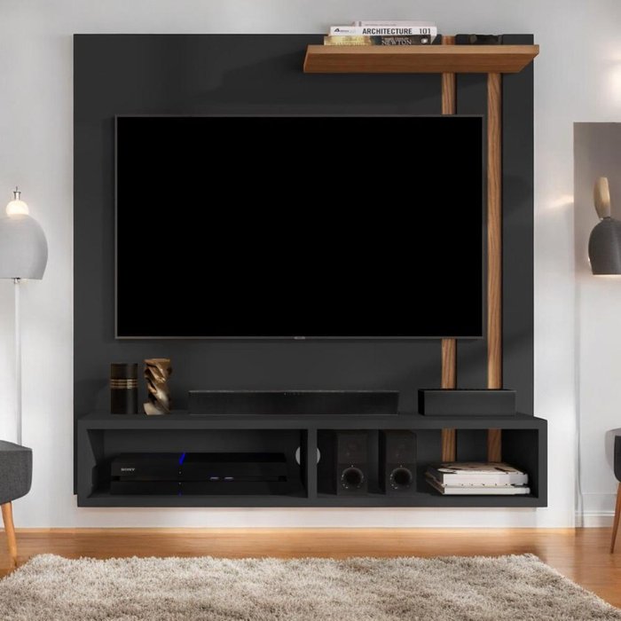 Painel para Tvs 40" Sun Preto e Freijó Sal Movelaria
