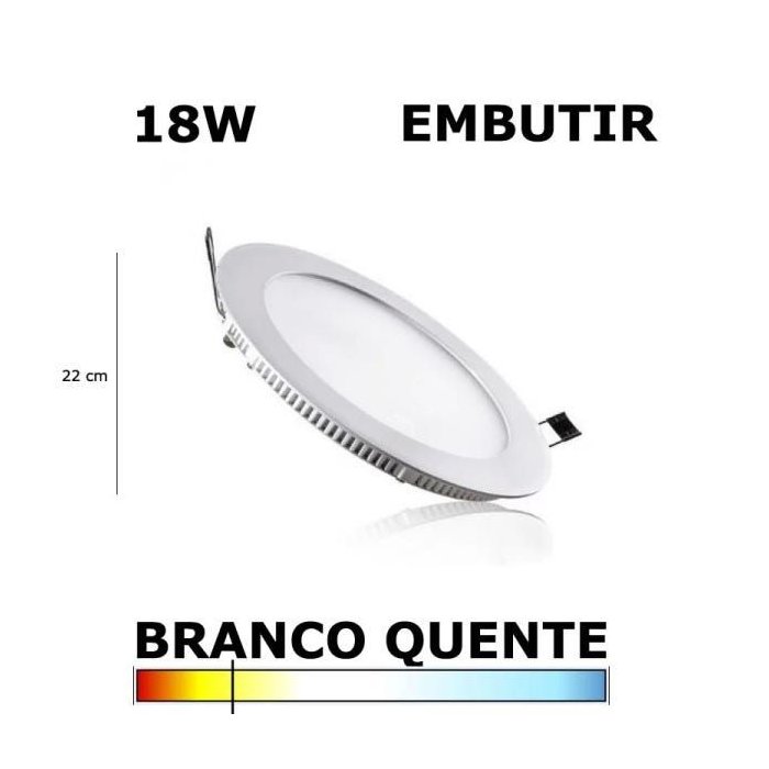 Painel Plafon Led 18w 22cm Embutir Redondo 3000k Evoled