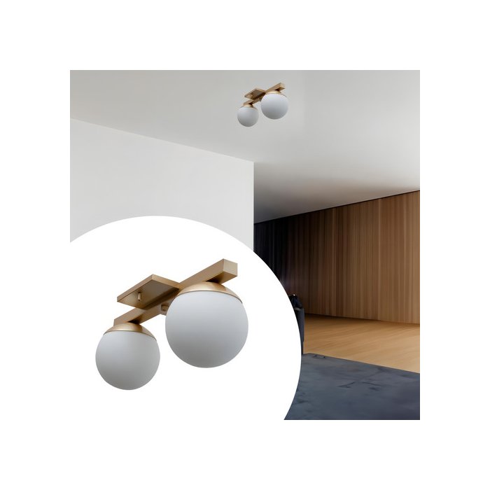 Painel Plafon Sobrepor Lustre de Teto Luminaria Jabuticaba 2 Globos Vidro Bivolt - Dourado