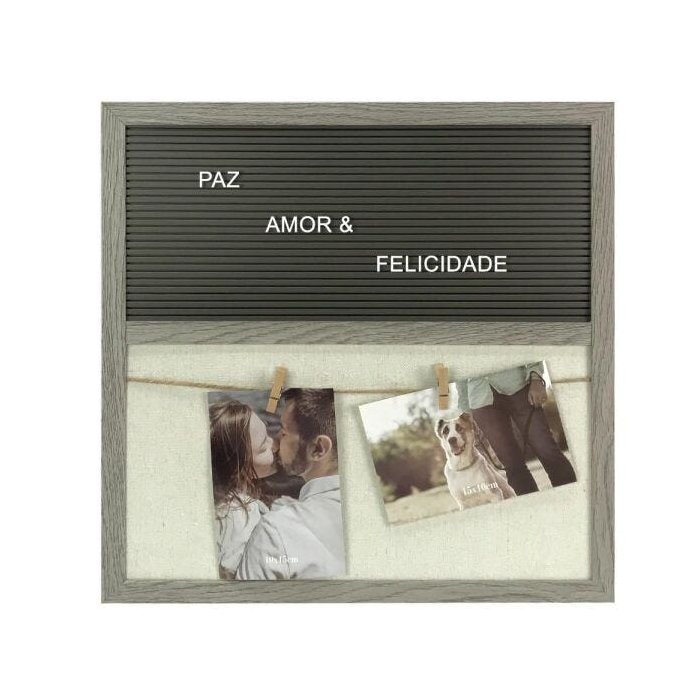 Painel Porta Retrato p Fotos com Letreiro Tam. 40x40 cm Cinza