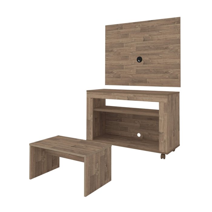 Painel Rack e Mesa de Centro Combo Cristal - Madeira Rustic