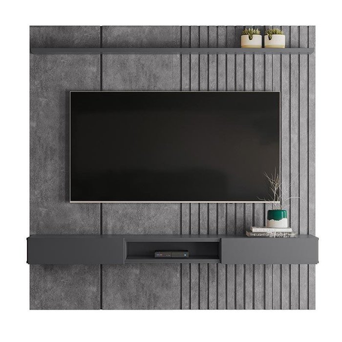 Painel Ripado 190cm Para TV 75 Polegadas Bless 1.9 Lukaliam Cimento Queimado