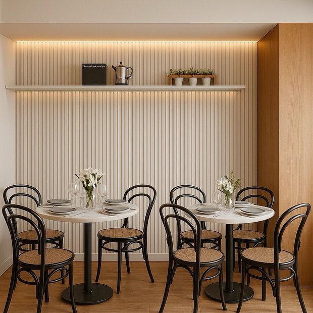 • Estética superior: O efeito ripado cria um visual moderno, com profundidade e textura, valorizando a decoração com requinte e aconchego.