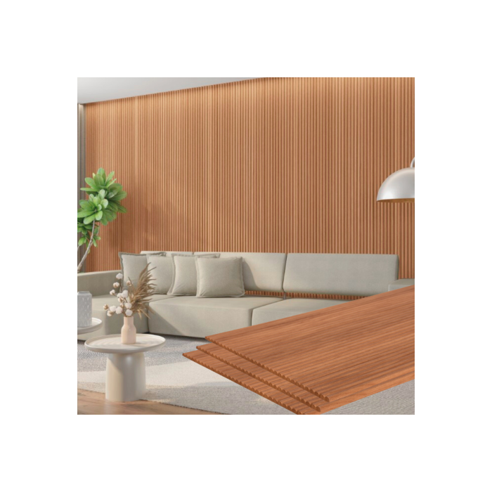 Produto de alta tecnologia e de fácil aplicação. Por ser produzido em MDF e PET reciclável, é um produto 100% ambientalmente correto e sustentável. Indicado para uso em ambientes internos. Imagem podem sofrer alterações devido a tela. Caso tenha dúvidas solicite mostruário. Vendido em caixas com 4 painéis sendo cada painel com 2,75m de comprimento x 44cm de largura, totalizando 4,9m2 por caixa. Teme umidade e temperaturas muito altas