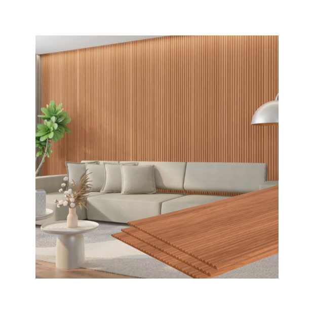 Produto de alta tecnologia e de fácil aplicação. Por ser produzido em MDF e PET reciclável, é um produto 100% ambientalmente correto e sustentável. Indicado para uso em ambientes internos. Imagem podem sofrer alterações devido a tela. Caso tenha dúvidas solicite mostruário. Vendido em caixas com 4 painéis sendo cada painel com 2,75m de comprimento x 44cm de largura, totalizando 4,9m2 por caixa. Teme umidade e temperaturas muito altas
