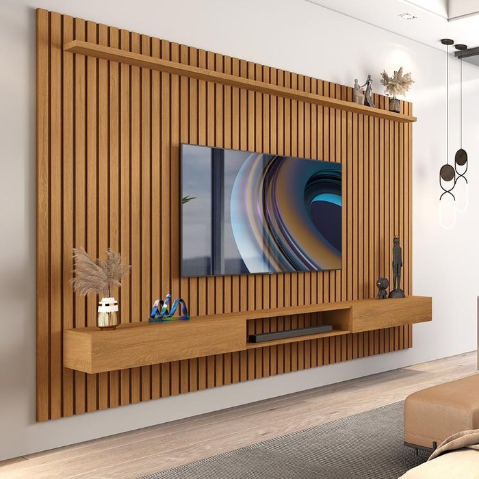 Painel Ripado com Nicho Suspenso para Tv até 75 Polegadas 1.8 Nature Versátil Giga Móveis