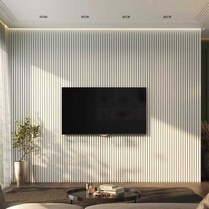 Painel Ripado de Pvc 2,70 X 0,15 cm acabamento branco gelo, combina com qualquer ambiente, para ser usado com efeito decorativo, composição Pvc, alta durabilidade e resistência , prova d'água, dispensa pintura, não propaga chamas, é imune a cupins, umidade, fungos e corrosão. Produzido com maior expessura, sendo o mais rigido e forte do mercado.