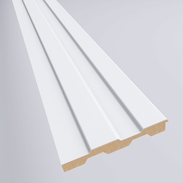 Transforme seus ambientes com o Painel Ripado Branco da Moldufama. Com um design moderno e clean, ele é a solução perfeita para criar uma parede de destaque com praticidade, pois já vem pronto para instalar, sem a necessidade de pintura ou acabamentos complexos.