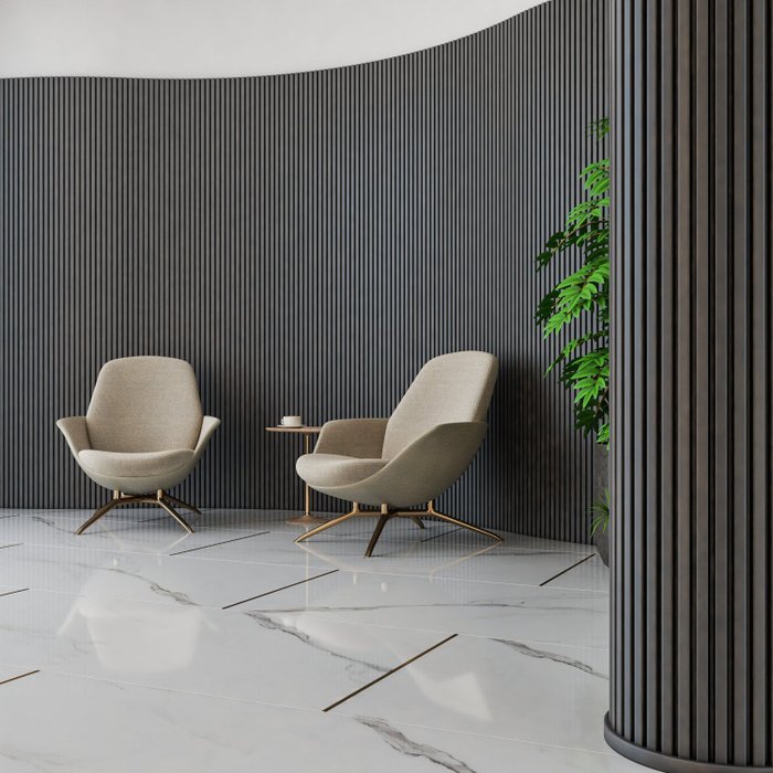 Descubra a revolução em painéis ripados com a linha Flex Gold da Barreto. Nossa inovação redefine praticidade e beleza. Com ripas espaçadoras e fita flexível impermeável, oferecemos instalação fácil em curvas horizontais e verticais.