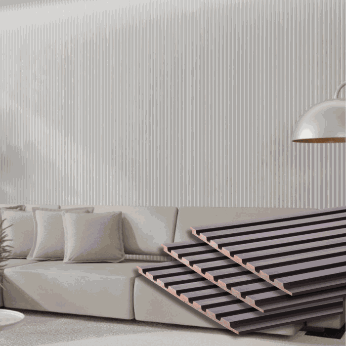 Painel usinado com base em MDF de 9mm, revestido em uma das faces com Laminado PET. Produto de alta tecnologia e de fácil aplicação. Modelo Frieze é produzido com linhas mais estreitas e próximas uma das outras, cada painel possui 8 ripas com largura de 3cm, e as canaletas com largura de 2,5cm. Vide desenho tecnico.