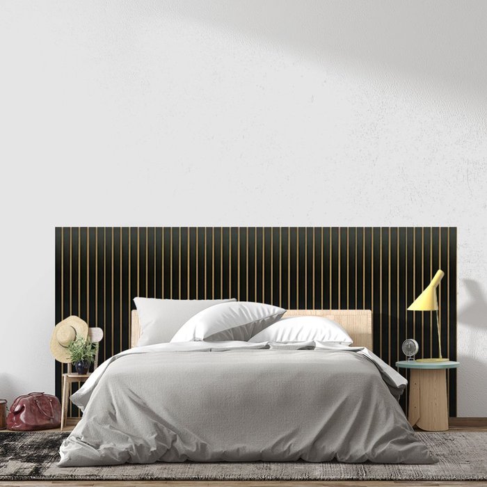 Painel Ripado Mdf Cabeceira Cama de Casal Autocolante - 150x250 Preto