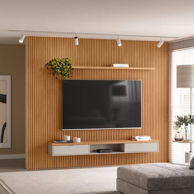O Painel Ripado Modular 3.0 da Linea Brasil vem para criar uma nova forma de decorar seu ambiente. Esse conjunto de Painel Ripado modular possui uma prateleira em MDP para objetos decorativos, nicho para aparelhos eletrônicos e duas portas basculantes com pistão a gás. Seu design clean deixará sua sala ainda mais moderna. Renove o ambiente da sua sala de estar com bom gosto e qualidade!