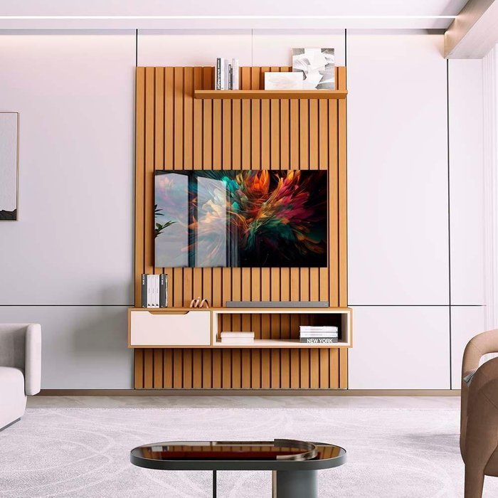 Painel Ripado Tv Até 60 Polegadas Nature Pérola Tucumã Jb Bechara