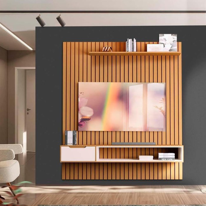 Painel Ripado Tv até 65 Polegadas Nature Pérola Foster Shop Jm
