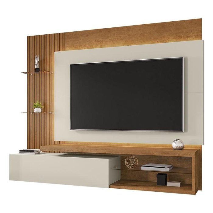 Painel Sala Copacabana para Tv até 65 Polegadas Naturale/off White/ripado