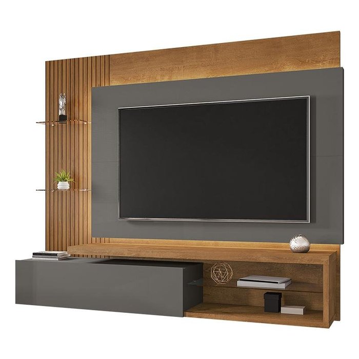 Painel Sala Copacabana para Tv até 65 Polegadas Naturale/titanium/ripado