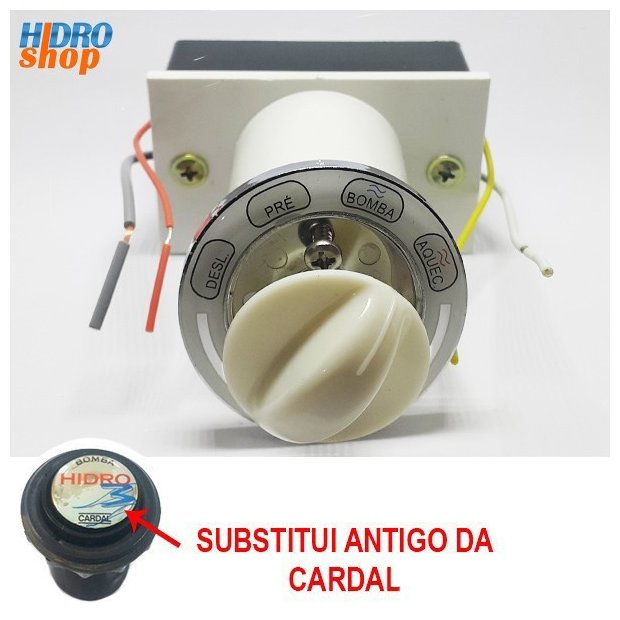 Painel seletor substituição botão pneumático hidro 2 e super hidro 2 Ref.: AC300 Fabricante: cardal Para aquecedor hidromassagem cardal - hidro 2 antigo - super hidro 2 antigo Substitui modelo de botão pneumático antigo Peça Original Cardal