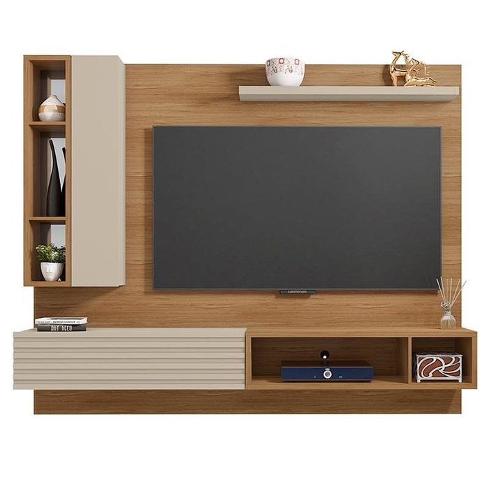 Painel Suspenso Action para TV até 75” Buriti/Off White - PR Móveis Buriti/Off White