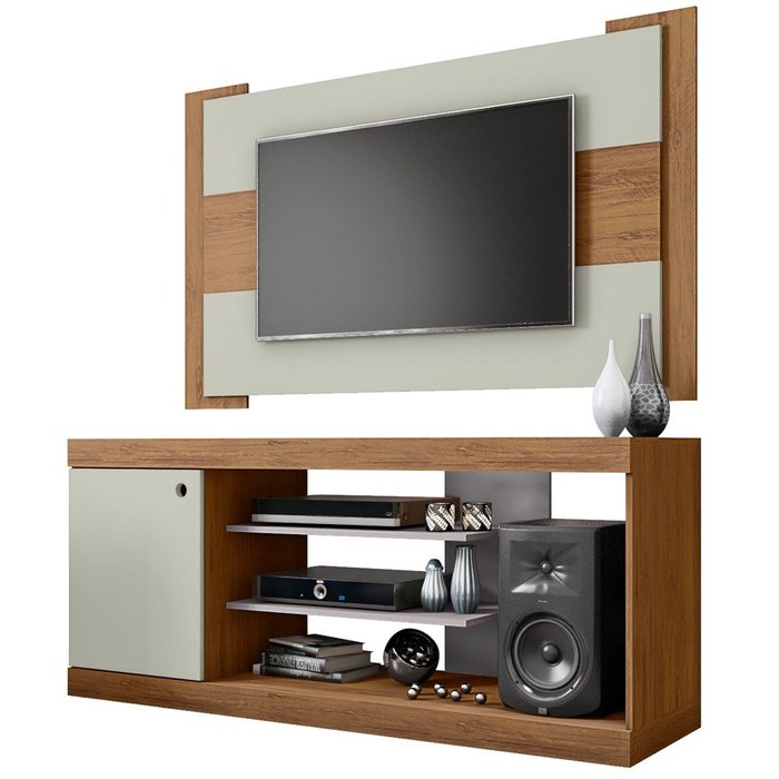 Painel Suspenso Denver e Bancada 1.3 Sala de Estar Oscar Freijó/Cinza Cristal - Gran Belo é perfeito para você que tem pouco espaço, mas não quer deixar a beleza de lado. Possui pés em rodízio para que você possa trocar ele de lugar sempre que precisar ou quiser, além da porta e prateleiras, perfeitas para você colocar aparelhos e objetos de decoração de sua preferência. Não vai perder essa, né?